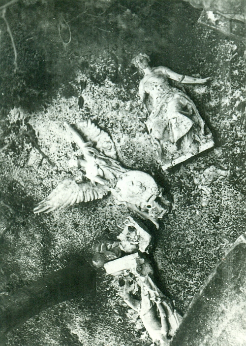Az épületről levert allegória darabjai
