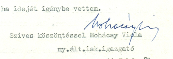 Mohácsy Viola aláírása az 1993. május 31-ei levelén