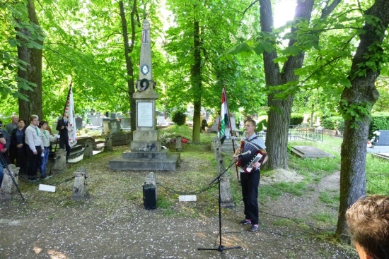 Ünnepség a lévai temetőben, Nagy László harmonikázik