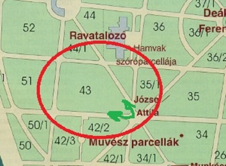 A Fiumei úti Nemzeti Sírkert 43-as parcellájának elhelyezkedése a mai temető területén
