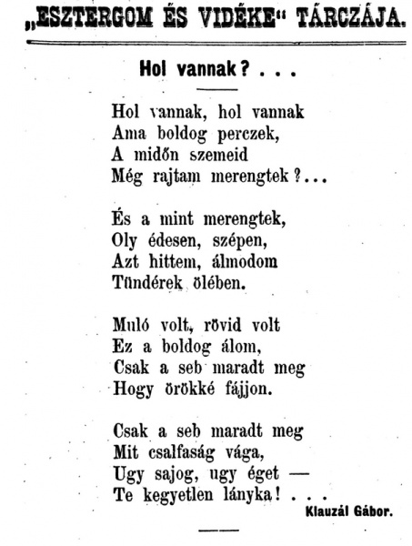Klauzál Gábor: Hol vannak?... c. verse a lapban
