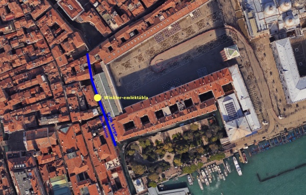 A Szent Márk tér, a Calle Larga Ascensione és Winkler Lajos emléktáblája