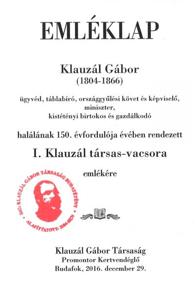 I. Klauzál társas-vacsora emléklapja