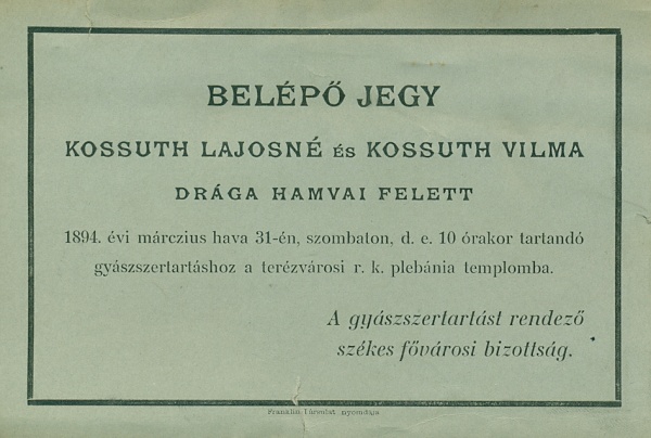 Belépőjegy, 1894