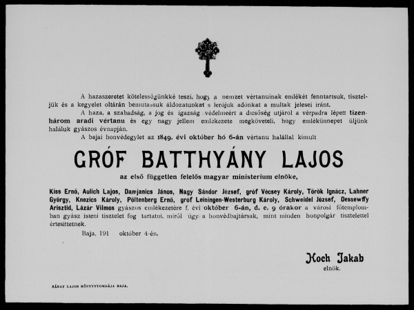 Batthyány Lajos aradi vértanúkkal közös partéja