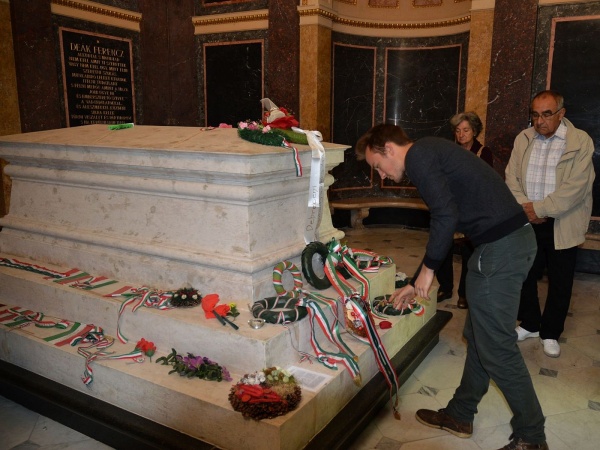 Markó Ábel koszorút helyez el a Klauzál Gábor Társaság nevében