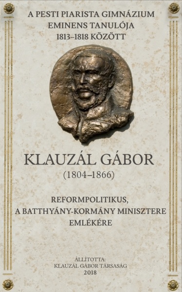 Klauzál Gábor tervezett emléktáblája a Piarista Gimnáziumban