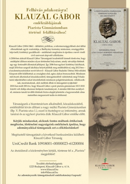 -- Klauzál Gábor emléktáblája a Piarista Gimnáziumban --