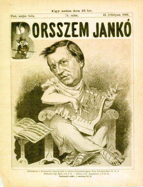 Jámbor Pál - Klics Károly által megrajzolt - karikatúrája a Borsszem Jankó címlapján, 1869-ben.