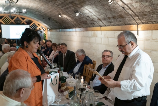 Lászlóné Varga Éva díszpolgár átadja a képzeletbeli stafétát az új díszpolgárnak