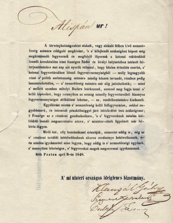 A ministeri országos ideiglenes bizottmány dokumentumán