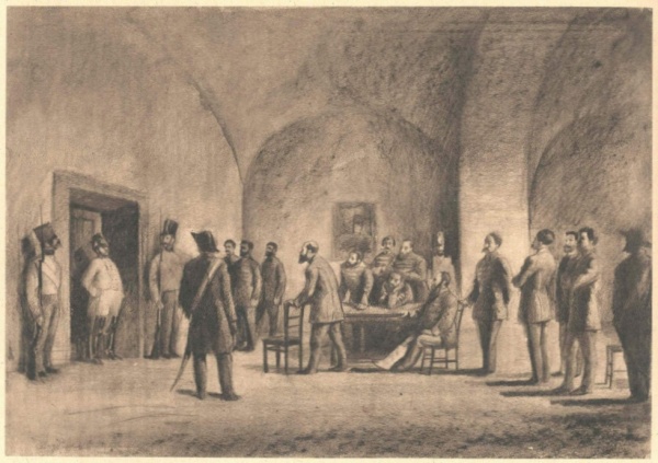 Az aradi tizenhárom a vérbíróság elöszobájában
