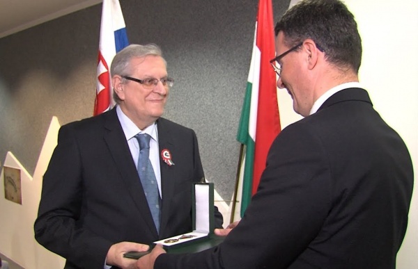 Érdemei elismeréseként Halász György átveszi a "Magyar Arany Érdemkereszt"-et Haraszti Attila főkonzultól.