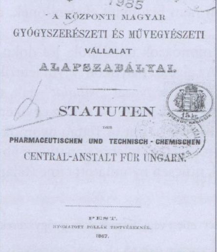 Központi Magyar Gyógyszerészeti és Művegyészeti Vállalat %u2013 alapszabályok (1867)