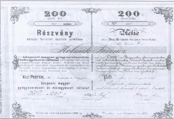 Központi Magyar Gyógyszerészeti és Művegyészeti Vállalat %u2013 részvény (1867)