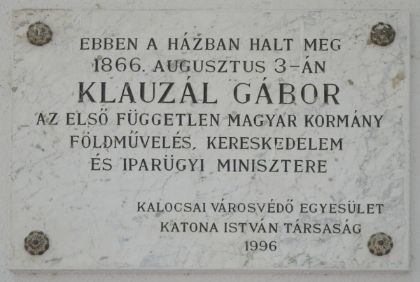 Szabó-Simig ház homlokzatán 1996-ban állított Klauzál-emléktábla