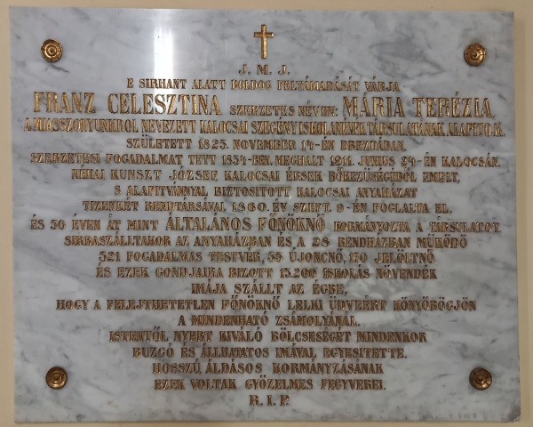 Franz Mária Terézia sírja feletti emléktáblája