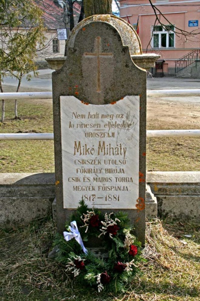 Mikó Mihály sírja, 1848-ban Csíkszék kormánybiztosa, a szabadságharc leverése után 4 évet töltött várfogságban