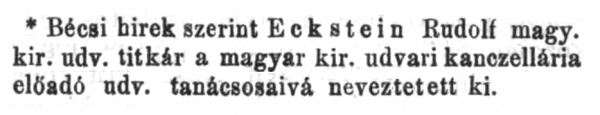 Eckstein Rudolf udvari tanácsosi kinevezése