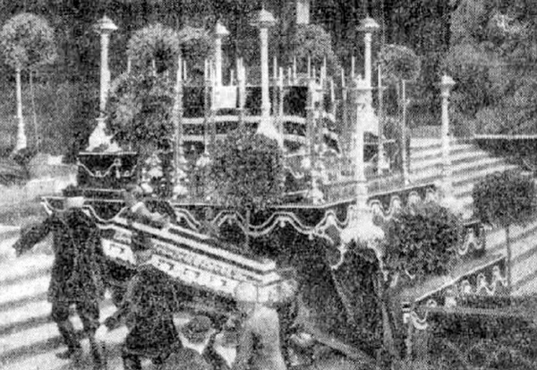 Lebó István, az utolsó 48-as honvéd ravatala a Nemzeti Múzeum elött