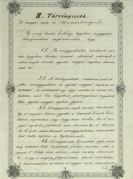 A magyar nyelv hivatalossá tételéről rendelkező 1844. évi törvény