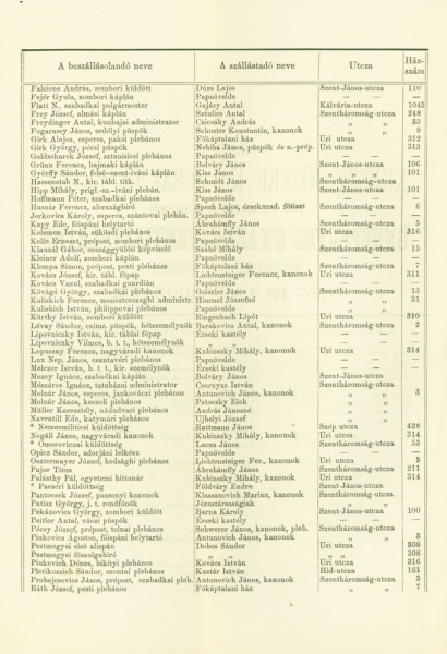 Kunszt érsek 1866. április 11-i gyászszertartásán megjelent vendégek és szállásadóik névsora, 2. oldal
