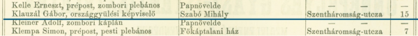 Kunszt érsek 1866. április 11-i gyászszertartásán megjelent vendégek és szállásadóik névsora, kiemelve Klauzál Gábor neve.