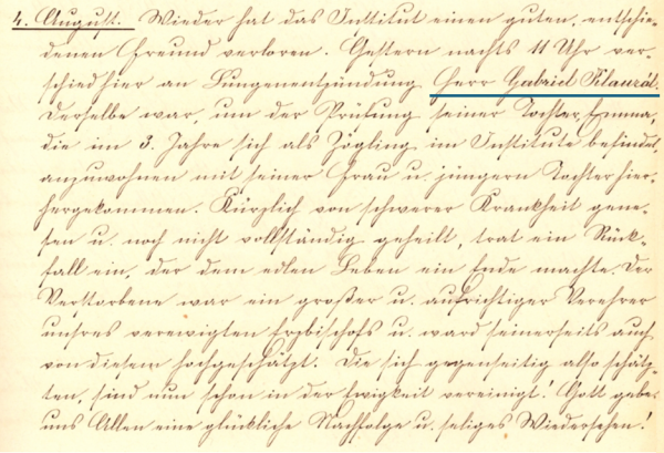 Bejegyzés Klauzál Gábor haláláról az iskolanővérek házkrónikájában (1866. augusztus 4.).