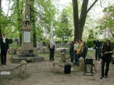 Utána átmentünk Lévára, ahol a megemlékezés második része szokott zajlani, a helyi temetőben lévő obeliszknél, ahol a később, a kórházban meghalt hősök nyugszanak. Közös sírjuk felett a lévai hölgyek gyűjtötte közadakozásból 1872-ben emlékoszlop létesült. Itt Török Alfréd a helyi CSEMADOK elnöke, és Himmler György a Párkányi Gimnázium igazgatója szólt, Zsapka Attila énekelt, és gitározott, majd itt is elhelyeztük koszorúinkat.
