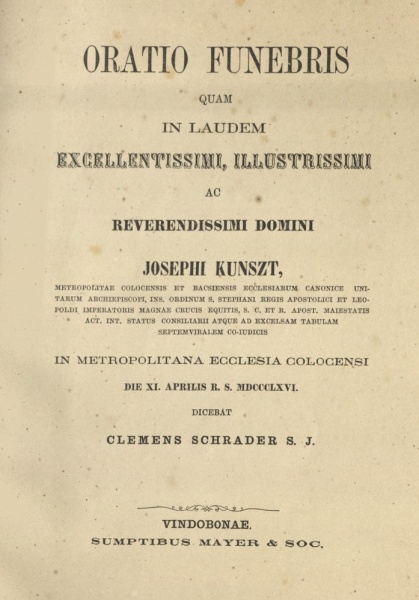 Clemens Schrader nyomtatott, latin nyelvű gyászbeszédének címoldala.